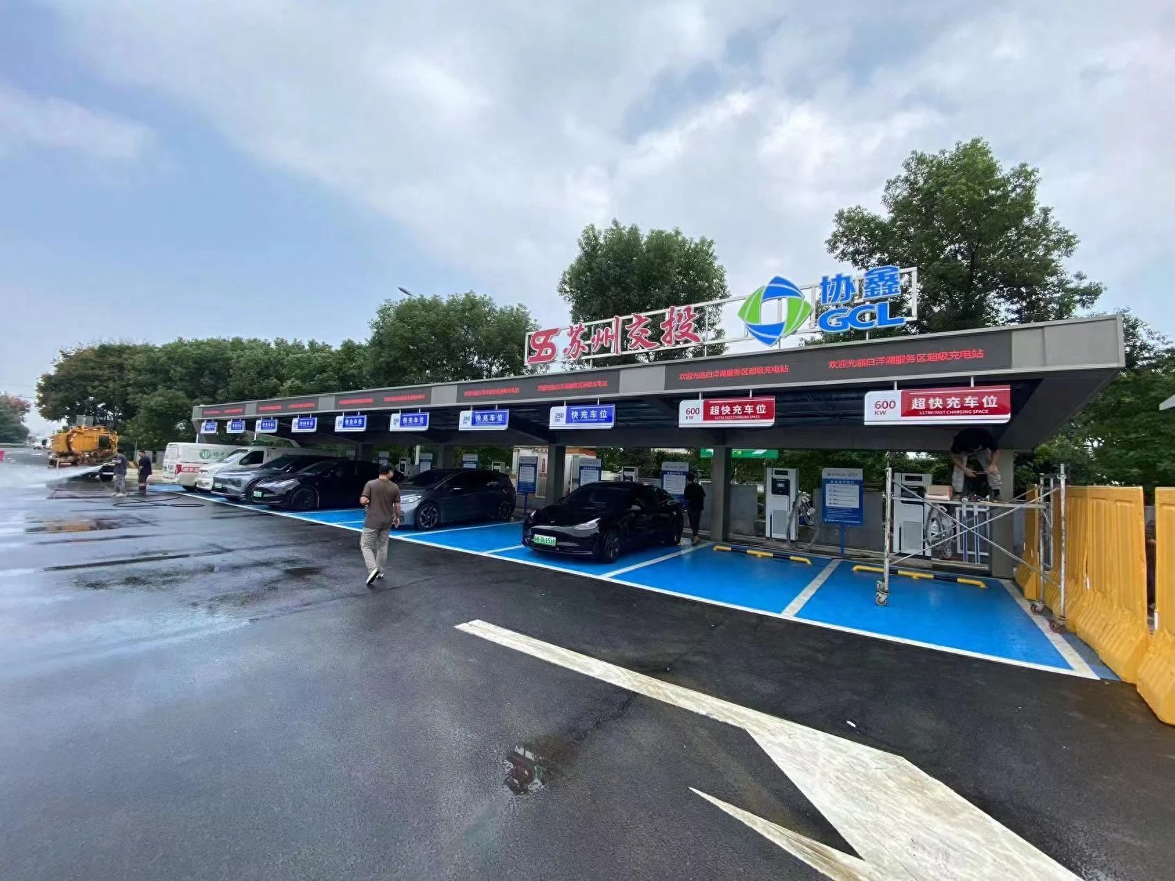 在中秋国庆双节来临之际,为进一步丰富苏州市管高速公路服务供给,持续提升服务能力和服务水平,近日,由苏州交投集团联合协鑫集团共同建设的江苏省高速公路服务区首座光储充一体化充电站,在常台高速白洋湖服务区正式投入使用。
